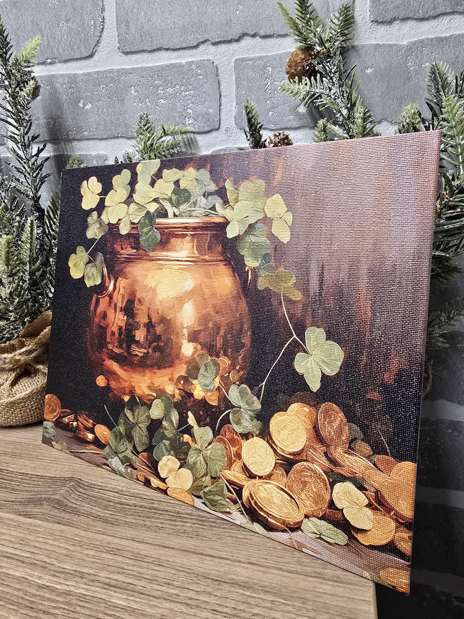 This lucky clover canvas is a timeless decorative piece that brings warmth, tradition, and a touch of magic to any space.