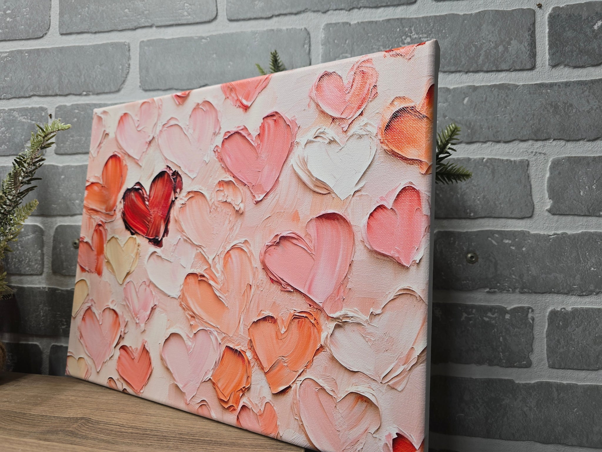 Bring warmth, softness, and a touch of romance to your space with this textured heart canvas art. Featuring layered, painterly hearts in shades of blush, peach, cream, and soft coral, this artwork showcases rich texture and gentle movement that feels both modern and timeless. The raised brushstroke effect adds depth and visual interest while keeping the palette calm and inviting.