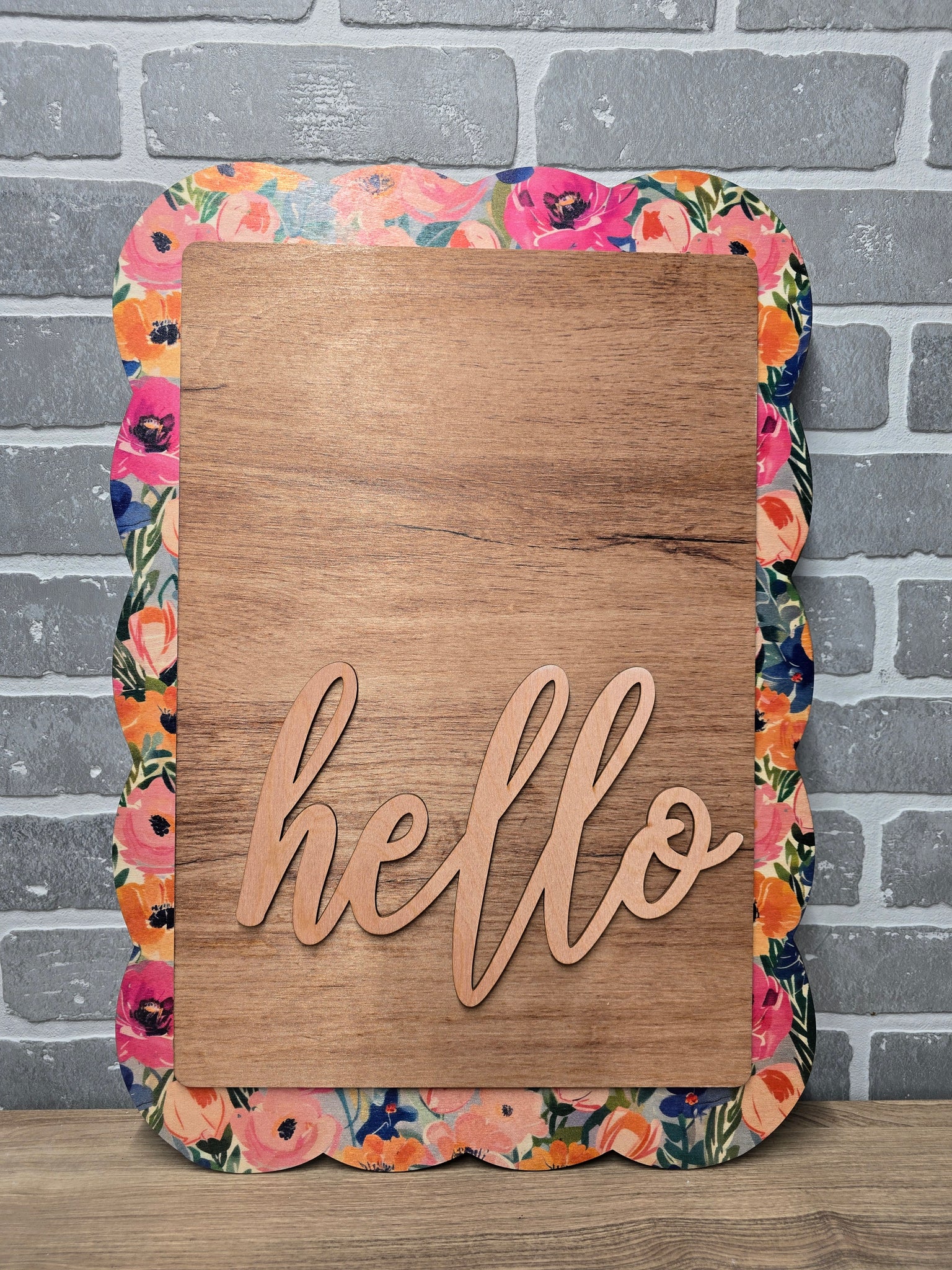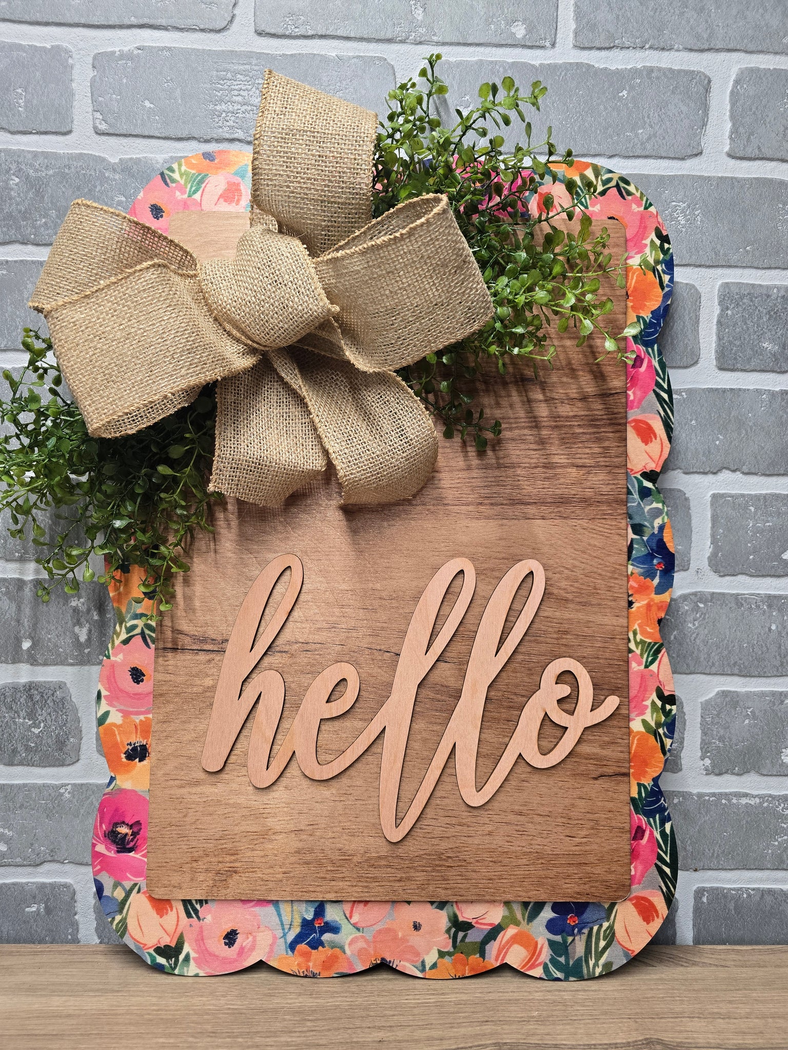 Make a bold and beautiful first impression with our Hello Bright Ranunculus Rectangle Door Sign. Featuring a vibrant floral border, warm wood center, and raised script lettering, this design blends classic charm with fresh, colorful detail. The layered elements create depth and texture that truly stand out on your front door.